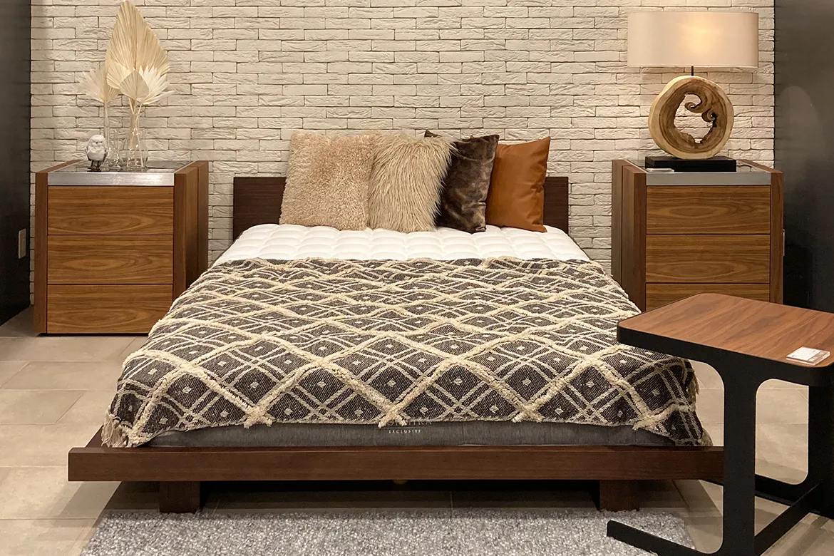 木目の美しさを最大限に生かしたウッドベッドは、身体も心も満たされる上質な眠りを追求しました。