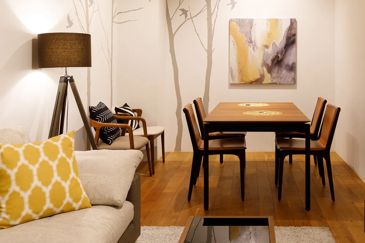 都会的な雰囲気の中に、イエローをアクセントとして取り入れたインテリアが癒しを感じられる空間。