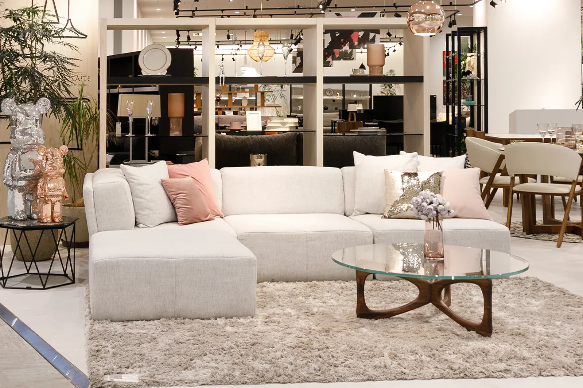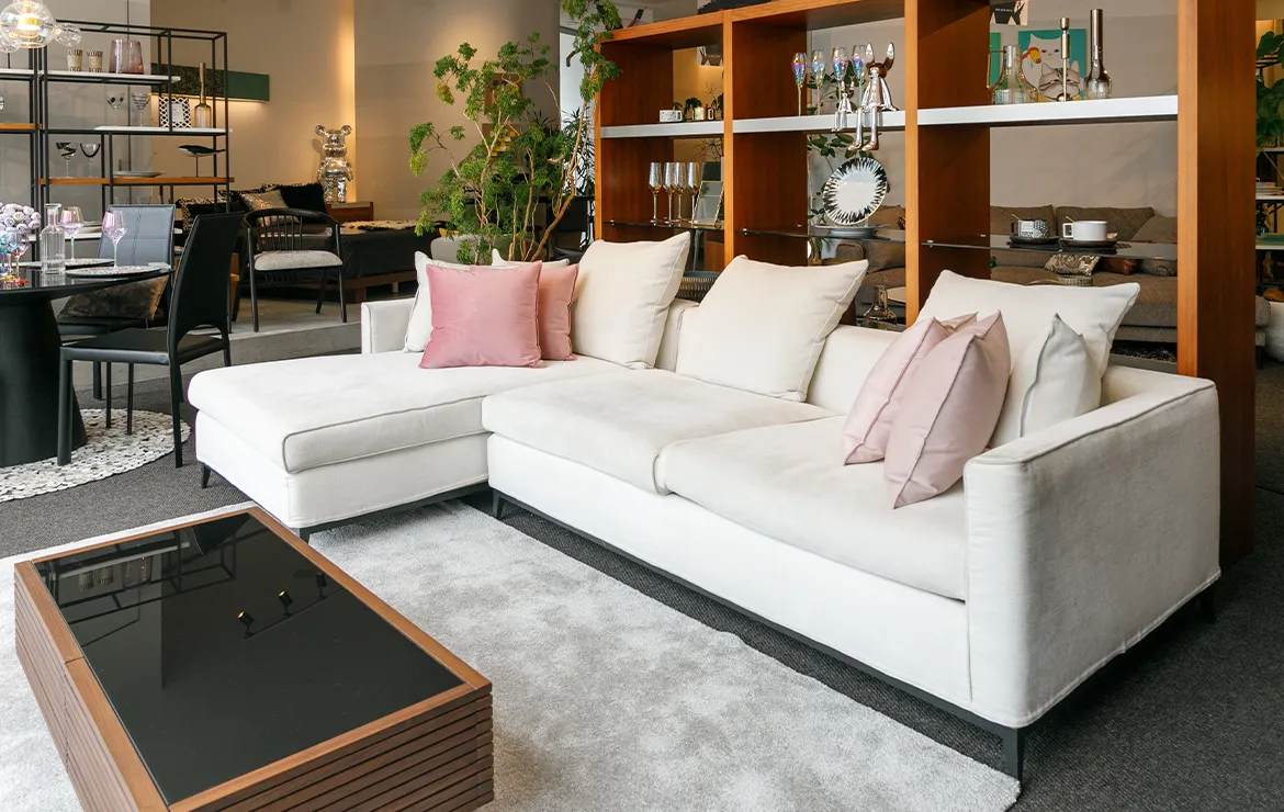 気品漂う美しい佇まいのソファセットは、低重心設計で圧迫感を感じさせず空間を広く見せてくれます。