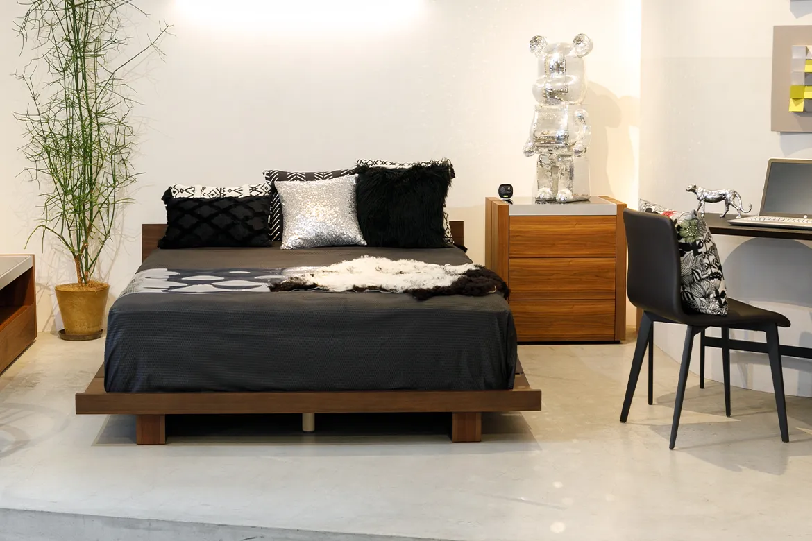 高級感漂うスタイリッシュなステージ型ベッドは、重心が低めでお部屋を広く見せつつも主役級の存在感を放ち、