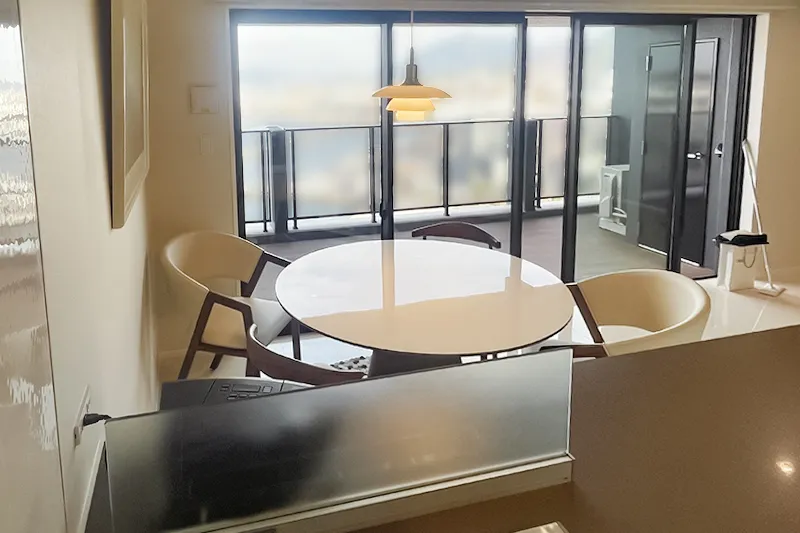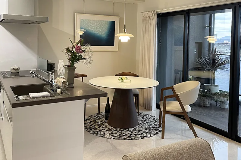 丸型テーブルの使い勝手が思った以上に便利で重宝しています。白い天板が部屋にマッチしてお気に入りのダイニングが出来ました。
