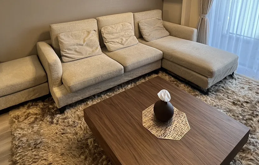 ソファー・ラグ・センターテーブル・ダイニングテーブル、お部屋に馴染んで気に入ってます。