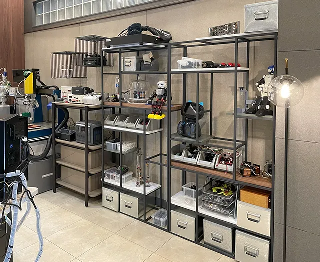 財閥グループのCEOを務める主人公は発明家でもあり、自宅には様々な発明品が置いてあります。機材や資料・大小異なる発明品を数多く収納する棚に、シェルフやチェストなどが採用されています。