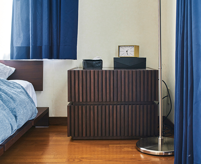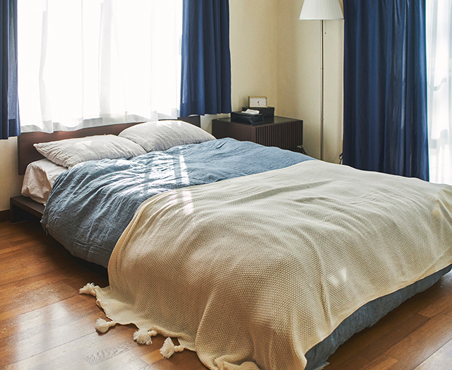 萩乃が夫と娘の三人で越してきた一軒家の寝室にて、ベッドフレームとチェストを使用いただきました。