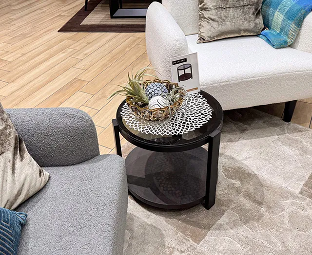 個性を感じさせるアシンメトリーな脚部が特徴のセンターテーブル。絶妙なバランスが美しく、シャープなガラストップをより惹きたてます。