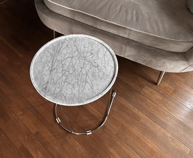上品な雰囲気を醸すサイドテーブル。美しい天然大理石がインテリアを引き立て、高級感のあるモダンな空間をつくります。